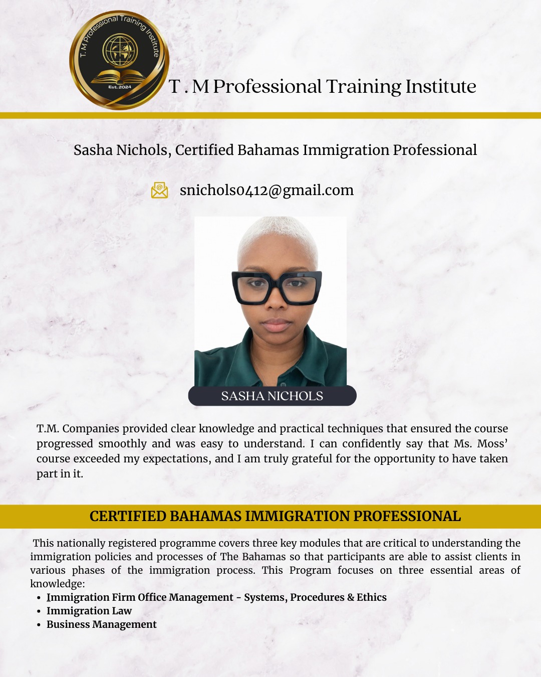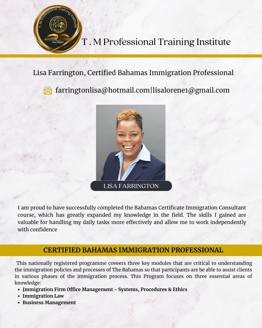 Alumni Latoya Kemp Rodney Francois Shanell Cunningham Chandra Kemp Trevon Thurston Melissa Dorsett Kisha Powell Jacqueline Adderley Iesha Pinder Lyna Francois Pamela Stuart Stanford McIntosh Donez Moss Sedena McIntosh Cobe Rolle Clement Penn Jr. Tammi Mitchell Mario McCartney Orlando Ramirez Lisa Farrington Sasha Nichols Angel Johnson Shenique Taylor Miranda Lightbourne Sherike Bowleg-Bartlett Latoya Kemp Rodney Francois Mario McCartney Chandra Kemp Shanell Cunningham Melissa Dorsett Ready to Elevate Your Business? Get Started OR Call Us At:+1 242-602-6468
